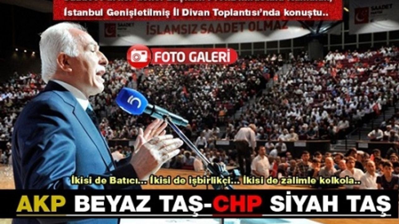 AK Parti ile CHP arasında bir fark olmadığını söyleyen Kamalak, Saadet Partisi ile AK Parti arasında büyük uçurumlar olduğunu belirtti. Kamalak, “AK Parti sürekli gerilim üretiyor. ‘Çapulcular gelir, CHP gelir’ diyor. Allah aşkına AK Parti’yle CHP arasında ne fark var temelde. Soruyorum. İrdeleyelim, analiz edelim. AK Parti Batıcı mı? Evet. Ya CHP? O da evet. AK Parti faizci mi? Evet. Ya CHP? O da evet. AK Parti işbirlikçi mi? Evet. Ya CHP? O da evet. AK Parti zalimlerle kol kola mı? Evet. Ya CHP? O da evet. Aralarındaki tek fark olsa olsa renkleridir. CHP, pirincin içindeki siyah taş, AK Parti de beyaz taştır. Mahiyet itibarıyla her ikisi de taştır. Bize soruyorlar, AKP ile farkınız nedir diye? Sayılmayacak kadar fazla fark var. Bir tanesini söyleyeyim. AKP ile Saadet arasında ilk başta amaç farkı var. AKP, Haçlı, AB ve Batı diyor. Biz ise tüm bunlara hayır diyerek, İslam Birliği, D-8 ve kardeşlik üzerine yürüyelim diyoruz. Gelin tanış olalım, sevelim, sevilelim. Bu dünya kimseye kalmaz. Hakk ve adalet üzerine yürüyelim” dedi.