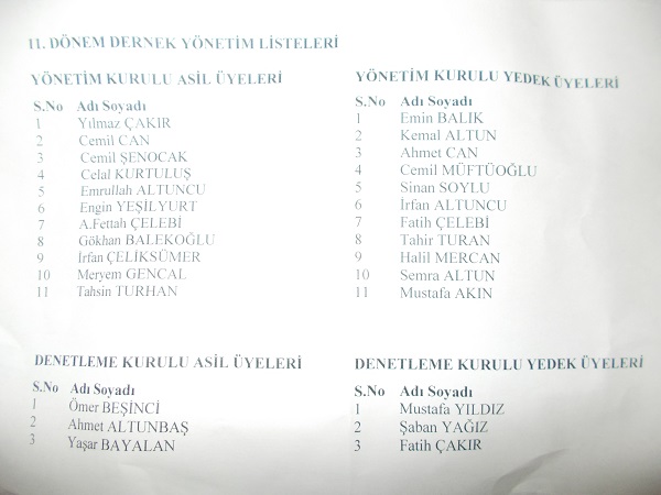 Kongrede yeni seçilen yönetim asil yedek ve denetleme kurulu üyeleri asil ve yedek olarak aşağıdakilerdir.