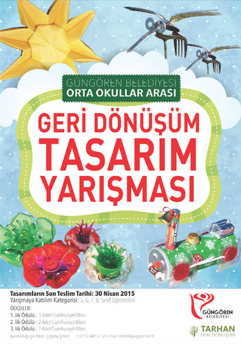 Öğrencilerinin, okullarından sorumlu bir öğretmen öncülüğünde bireysel olarak katılabileceği yarışmada, tasarımların, geri dönüştürülebilir nitelikteki, kâğıt, karton, plastik, metal, cam gibi atık malzemelerden oluşturulması gerekiyor. Yarışmanın finalistlerinin ödülleri ise cumhuriyet altın olacak. Öğrenciler tasarımlarını 30 Nisan 2015 tarihine kadar Güngören Belediyesi Temizlik İşleri Müdürlüğü’ne teslim edebilirler.