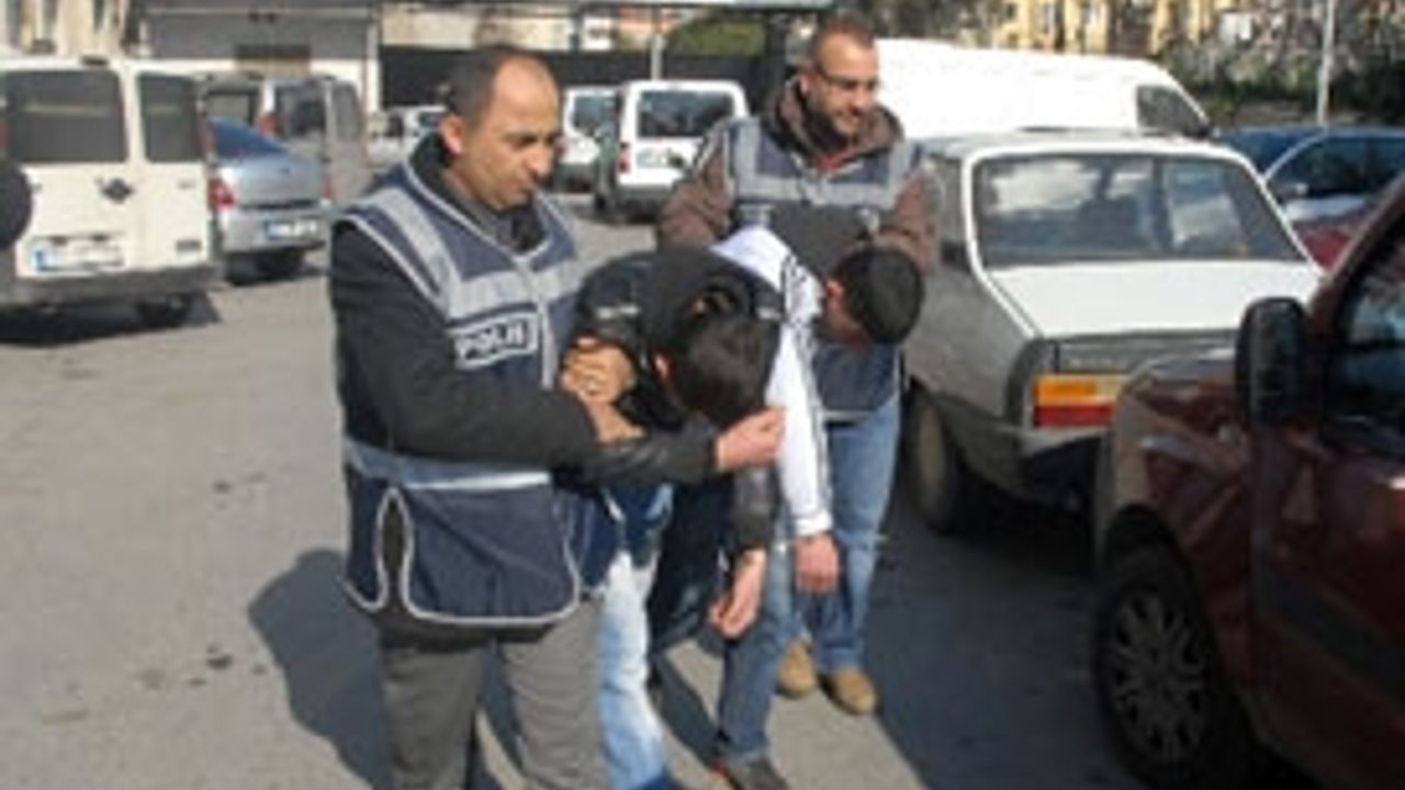 H.T.'ye ait kuaföre giren üç zanlı, işyeri sahibi ve saçlarını boyatan S.S.'yi bıçak tehdidiyle etkisiz hale getirerek, cep telefonları ve 90 lira para gasp etti. Daha sonra bir motosiklete binerek kaçtılar. Şoka giren iki mağdur, durumu polise bildirdi. H.T. ve S.S.'nin verdiği bilgiler doğrultusunda zanlıların eşkalini belirleyen polis, çevrede araştırma başlattı. Bir süre sonra eşkale uyan M.A.D., S.K. ve E.K., motosikletleriyle birlikte yakaladı. Zanlıların üzerinde yapılan aramada, H.T. ve S.S.'ye ait birer cep telefonu ve 75 lira para ele geçirildi. Suçlarını kabul eden zanlılardan M.A.D. ve S.K.'nin gaspı yaptığı, 17 yaşındaki E.K.'ninse gözcü olarak beklediği belirlendi. E.K. işlemlerinin ardından Çocuk Şube Müdürlüğü'ne teslim edilirken M.A.D. ve S.K., Gasp Büro Amirliği'ne götürüldü. Buradaki işlemleri tamamlanan zanlılar adliyeye sevk edildi. Zanlıların üçü de çıkarıldıkları mahkemelerce tutuklanarak cezaevine gönderildi.