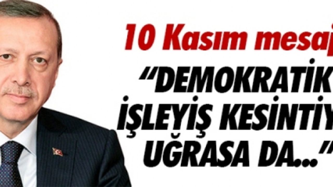 Cumhurbaşkanı Recep Tayyip Erdoğan, Gazi Mustafa Kemal Atatürk'ün Vefatının 76'ncı yıldönümü nedeniyle yayınladığı mesajında, "Cumhuriyetimizin kurucusu Gazi Mustafa Kemal'i, ebediyete irtihalinin 76'ncı yıldönümünde saygı ve rahmetle yad ediyoruz" dedi. Demokratik işleyiş zaman zaman kesintilere uğrasa da, Türkiye'nin Gazi Mustafa Kemal Atatürk'ün işaret ettiği demokratik hedefler doğrultusunda önemli mesafeler katettiğine vurgu yapan Cumhurbaşkanı Erdoğan, "Milli irade, demokratik işleyiş zaman zaman kesintilere uğrasa da ülkemiz bugün Gazi Mustafa Kemal'in işaret ettiği demokratik hedefler doğrultusunda önemli mesafeler katetmiştir. Cumhuriyetin 91'nci yıldönümünü iftiharla kutlayan Türkiye, istikrar içinde güçlenmeye ve büyümeye, demokrasinin standartlarını her geçen gün yükseltmeye devam ediyor" dedi.