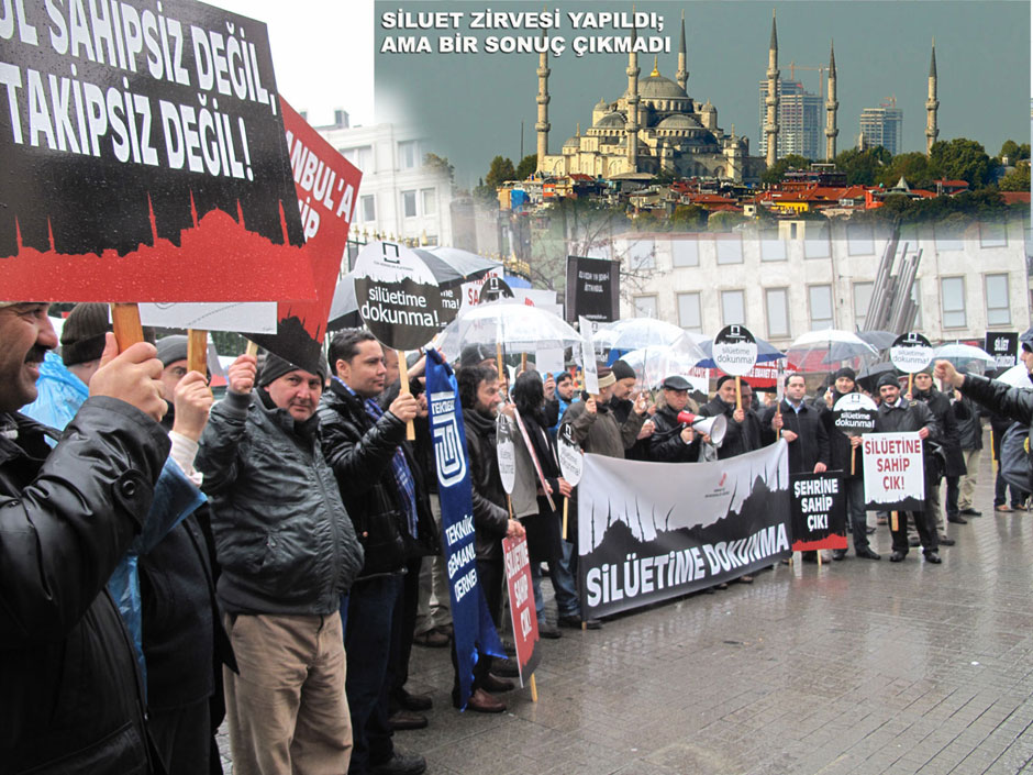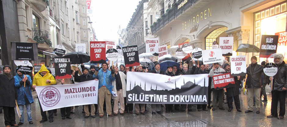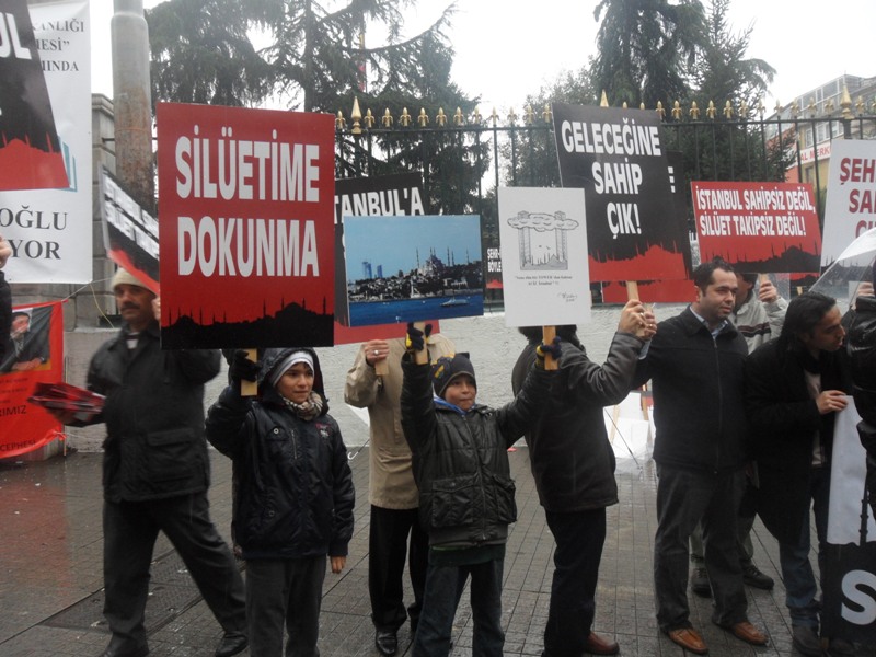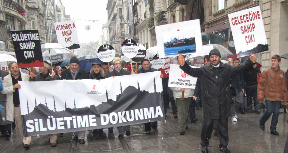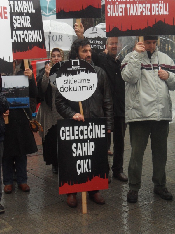 Mimar ve Mühendisler Grubu üyeleri, Mazlum-Der ve çeşitli sivil toplum kuruluşu temsilcileri İstanbul’un tarihsel silüetini bozan yapılaşmayı Galatasaray Lisesi önünde yaptığı basın açıklamasıyla protesto etti.