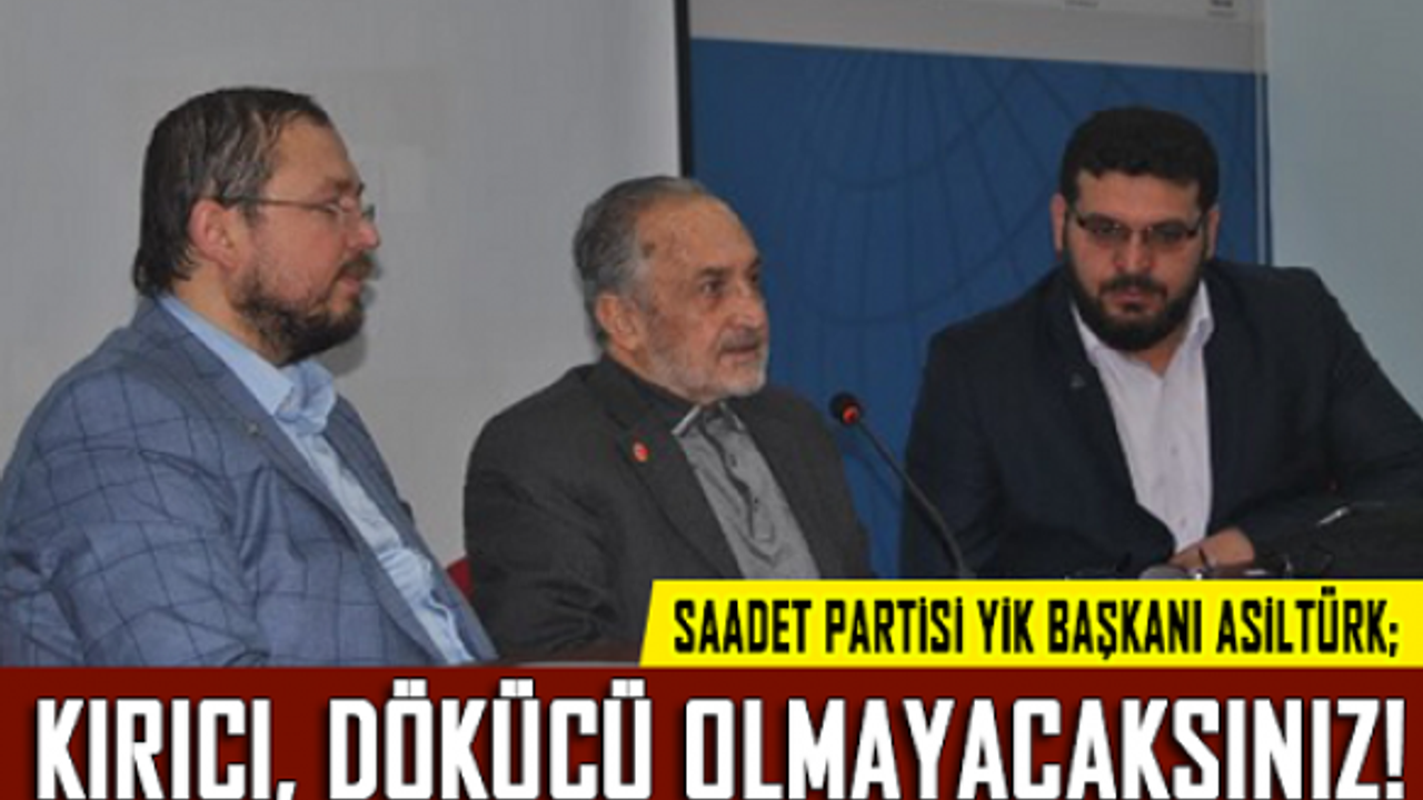 AGD’nin aylık gerçekleşen Üniversite Başkanları Toplantısı’na katılan Saadet Partisi YİK Başkanı Oğuzhan Asiltürk, gençlere tavsiyelerde bulundu, uyarılar yaptı. Asiltürk, “Kırıcı, dökücü olmayacaksınız. Sizler karşı taraftaki gruplara hakaret eder onları eleştirirseniz, yeni bir dünyayı kuracak insan bulamazsınız” diye uyarılarda bulundu.