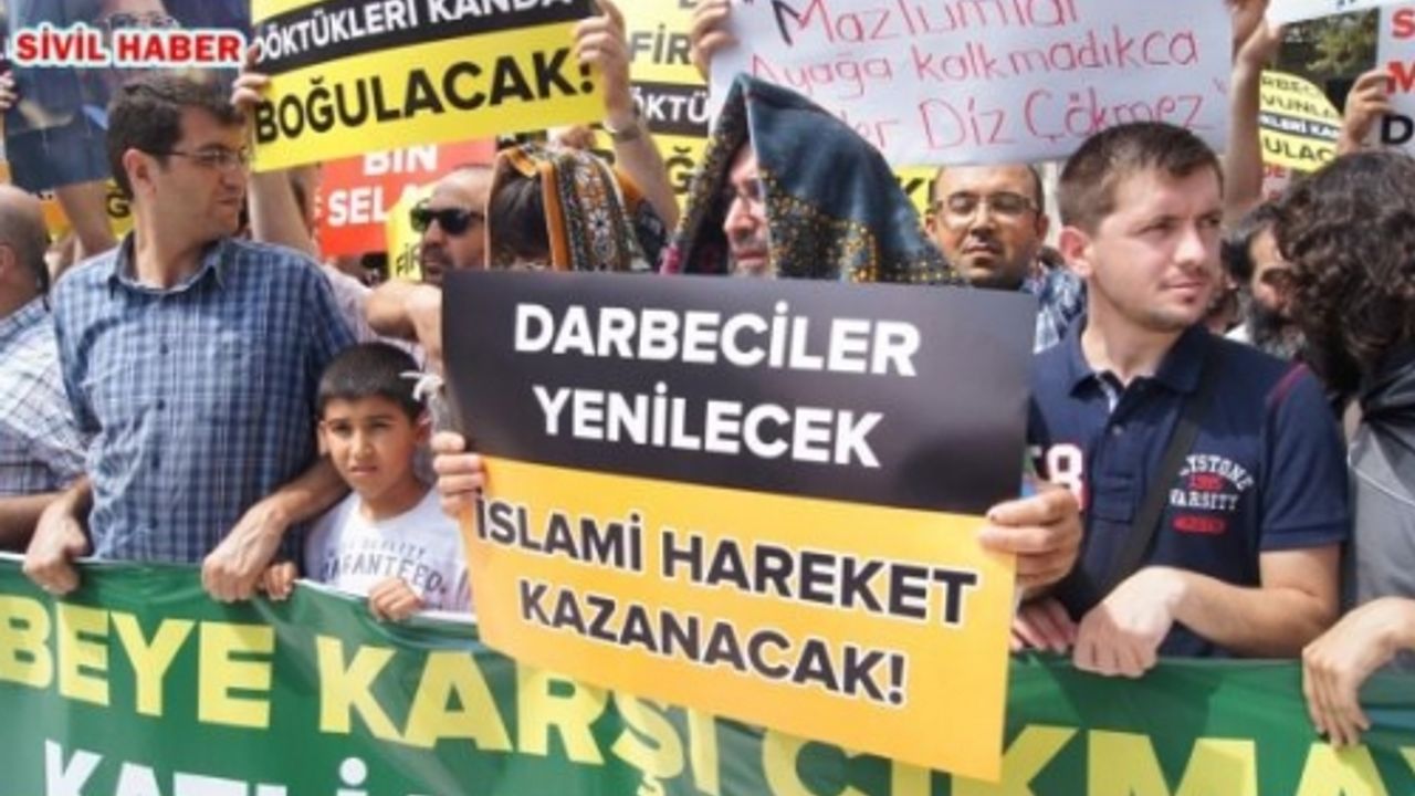 Öğle saatlerinde Eyüp Sultan Camisi ve avlusunu dolduran vatandaşlar sık sık tekbir getirerek; "Darbeci firavunlar döktükleri kanlarda boğulacak", "Darbeciler yenilecek, İslami hareket kazanacak", "Suriye'de Mısır'da direnişe bin selam", "Darbeci firavunlar döktükleri kanda boğulacaklar" yazılı pankartlar "İslami hareket engellenemez", "Defol Sisi seninleyiz Mursi", "İhvan'a selam direnişe bin selam" sloganları attı.