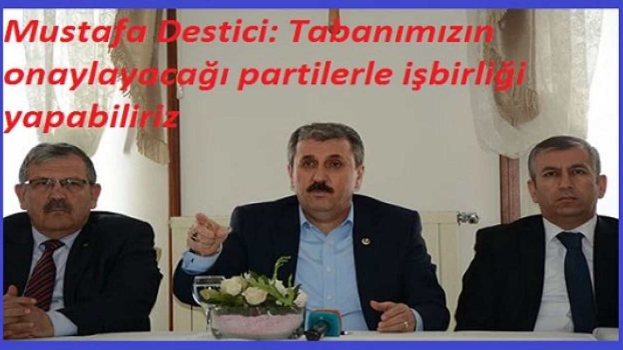 Tabanın onaylayacağı siyasi partilerle işbirliği yapabileceklerinin altını çizen Destici, "Bugün bazı gazetelerde de var seçim işbirliğiyle ilgili. Bizim doğru anlaşılmamız lazım. Biz bu konuda hiç kimsenin spekülasyon yapmasını istemiyoruz. Bazıları bizim ağzımızdan bir takım yorumlar yapıyorlar. Bizim söylemediğimiz sözleri yorumlamaya çalışıyorlar. Bizim seçim işbirliğiyle ilgili düşüncelerimizi ve sözlerimizi başka yerlere çekmeye çalışıyorlar. Ve itibarsızlaştırmaya çalışıyorlar. Biz BBP olarak seçimlere hazır bir partiyiz. Milletin talebini, kamuoyunun talebini görmezden gelemeyiz. Ebetteki tabanımızın onaylayacağı, milletimizin onaylayacağı siyasi partilerle işbirliği yapabiliriz. Bunu açık ve net söylüyorum. Bu konuda hiçbir tereddüdüm yok. Ülkemizin içinde bulunduğu şartları da göz önüne alarak geldiğimiz noktada bunu sonuna kadar kovalayacağımızı ifade ediyorum. Ama bazı aklı evveller, bazı siyasi ahlaktan yoksun olanlar sırf kendi menfaatleri için, kendileri bir taraflara yaranmak adına ya da aday adayı oldukları partide adaylıklarını kesinleştirmek adına bir takım yorumlar yapıyorlar seçim işbirliği hakkında. Bunlar iftiradır. Bu iftirayı atanları müfteri olarak nitelendiriyorum. Bu iftiralarını ispatlamazlarsa, delillendirmezlerse onlar bu dünyanın en alçak ve en müfteri insanlarıdır." sözlerini kaydetti.