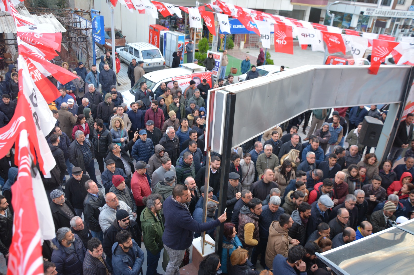 dörtlüğüyle seslendiren Aksoy, partililerden yoğun alkış aldı. "İşte biz de 'Dönen dönsün, biz dönmezek yolumuzdan' CHP'liyiz, yanyanayız, omuz omuzayız. Memenemen'in burçlarına CHP bayrağını yeniden dikeceğiz. Hepinize saygılar sevgiler sunuyorum." sözleriyle konuşmasını bitiren Serdar Aksoy, parti bürosunun açılışını partililerle yaparak kurdeleyi kesti.