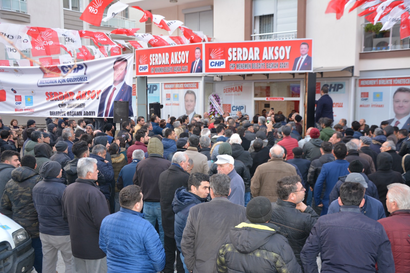 CHP Menemen Belediye Başkan Adayı Serdar Aksoy, seçim çalışmaları kapsamında Menemen'de 3. seçim bürosunun açılışını bugün yaptı.
