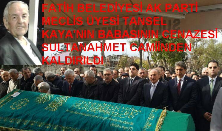 Fatih belediyesi Ak Parti Meclis Üyesi Tansel Kaya'nın babası Necati KAYA'nın cenazesi Sultanahmet caminde Cuma namazı ardından kılınan cenaze namazı sonrası son yolculuğuna uğurlandı. Cenaze merasimine İstanbul Büyükşehir Belediye BAşkanı Kadir Topbaş, Fatih Belediye başkanı Mustafa Demir, Belediye Meclis Üyeleri ve sevenleri katıldı. Tansel Kaya'nın çok üzgün olduğu meresimde bütün sevenelrine ve katılan herkese teşekkür ederek taziyeleri kabul etti.